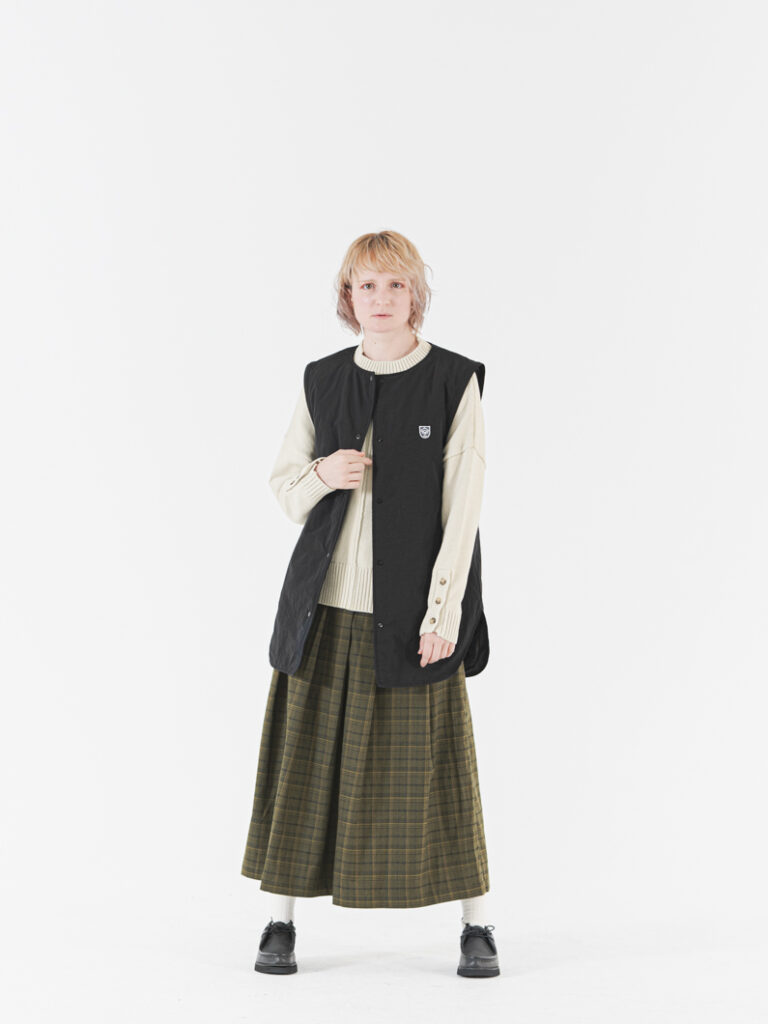 ベストにした時も、ヒップ周りはしっかりカバーしつつ、肩回りのカットや全体のバランスを何度も調整したこだわりのシルエットです。