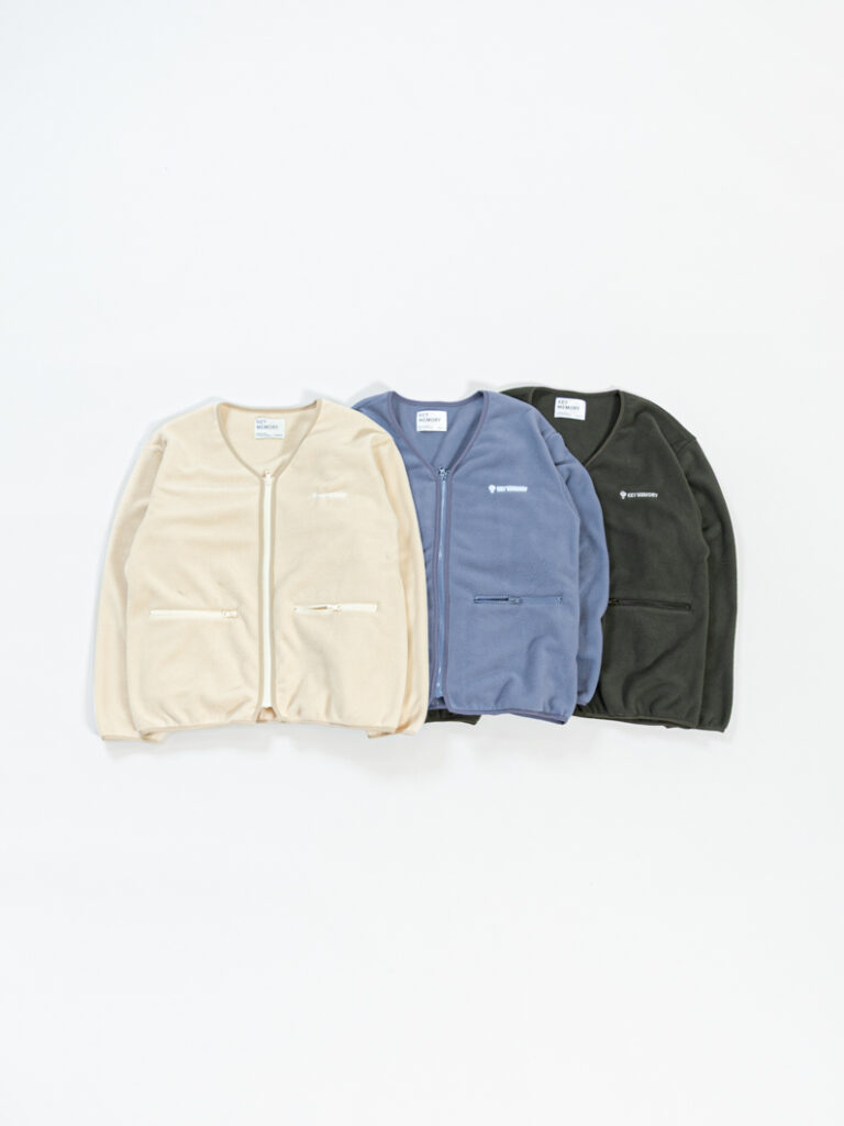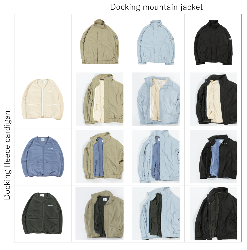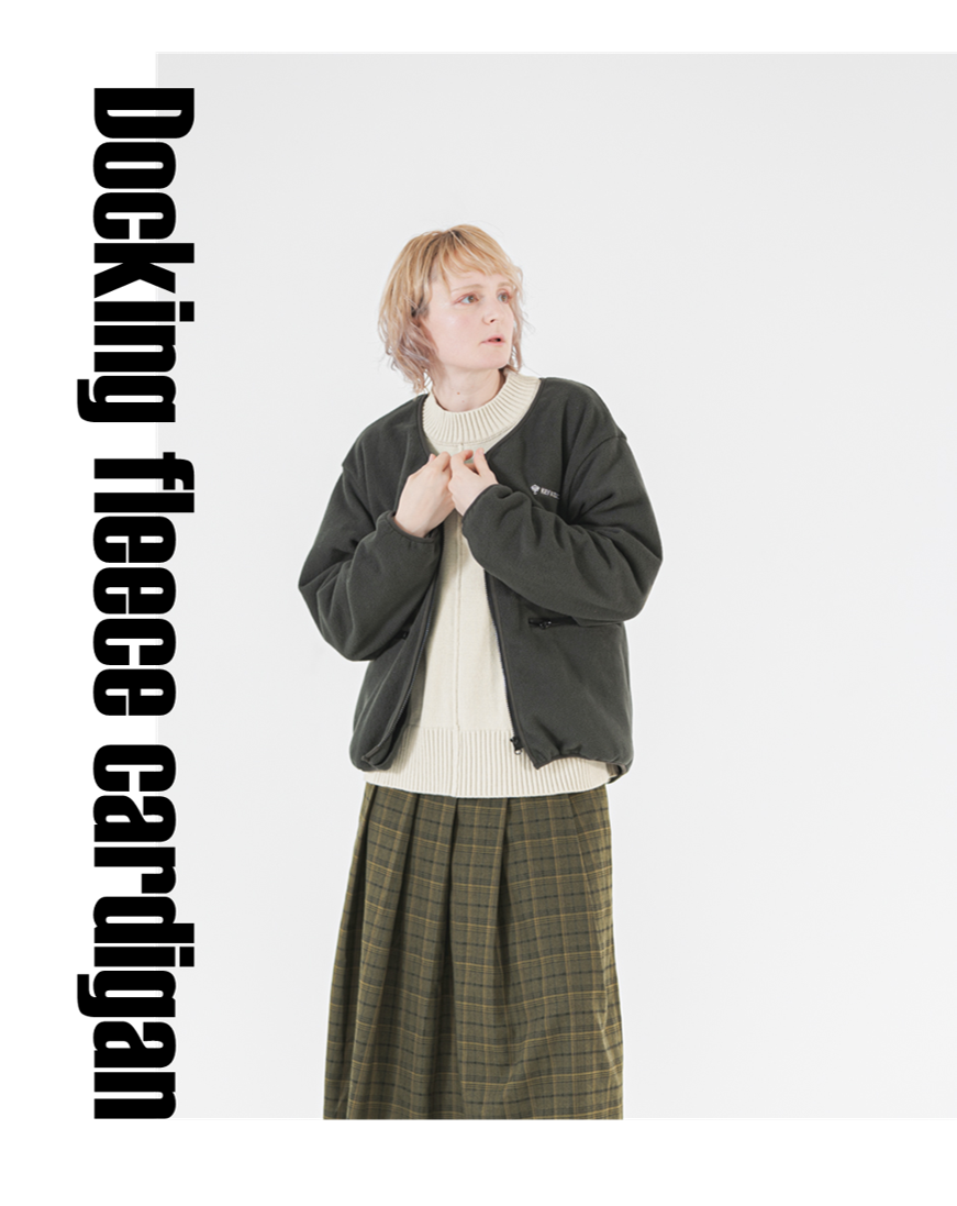 寒い日は一気にチャックをしめて、暖かい日はボタンで上だけしめてTOPsをのぞかせる等、様々な着こなしでお楽しみいただけます◎