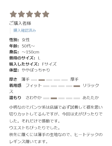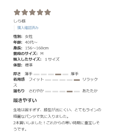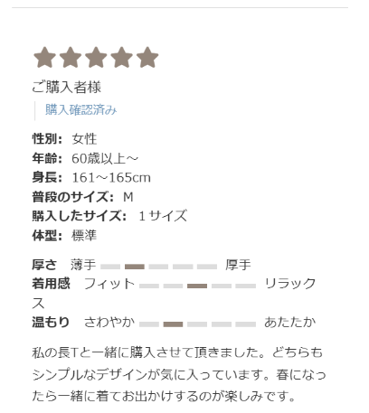 どんな商品と組み合わせて着用しているのか、着心地、サイズ感など