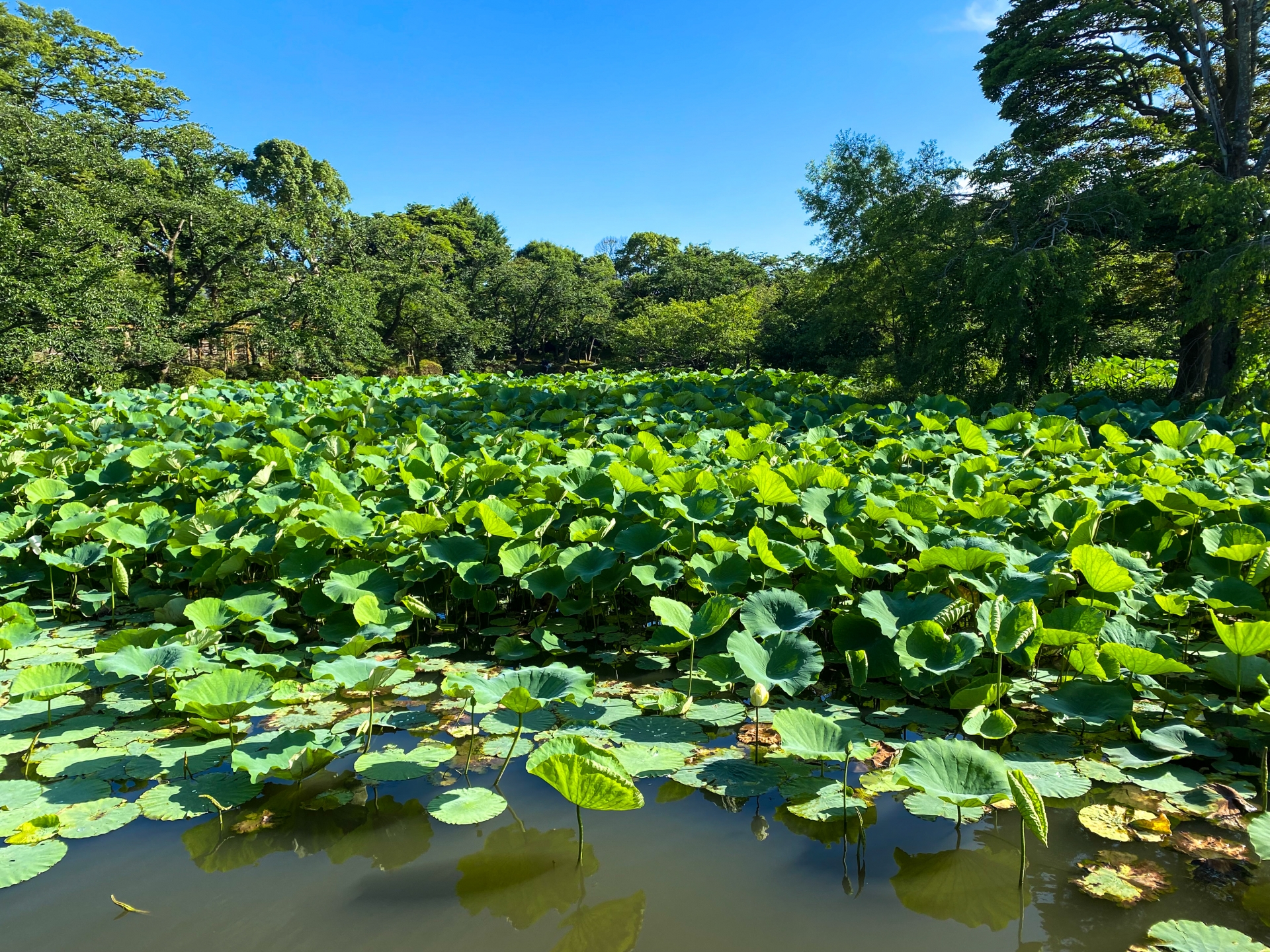 三ノ鳥居をくぐり抜けた先に見えてくるのが、“源平池(げんぺいいけ)”とよばれる大きな池です。