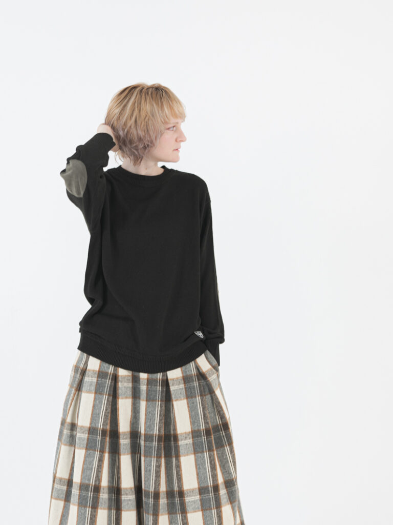 どこか懐かしく、今の気分にもフィットするデザイン性とサイズ感にこだわったニットが入荷しました。この冬のKEYMEMORYのテーマ「ニューレトロ」の中でもおすすめなのが、“エルボーパッチ”を施したこちらのニットです。レトロを感じさせるのは、肘部分にあしらわれたフェイクスウェードのパッチ。クラシカルなプルオーバーデザインに、首元と裾の二重リブや程よくルーズなシルエットで「ニュー」な要素をプラスしました。Tシャツと合わせてラフに着こなしたり、シャツやタートルネックと重ねてきれいめにも。着方次第で表情が変わる、着回し力の高い1枚です。ボリュームが出すぎない程よい厚みと、チクチクしないやさしい肌触りも魅力。