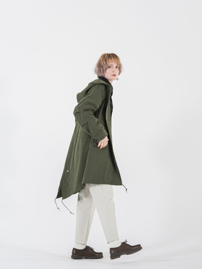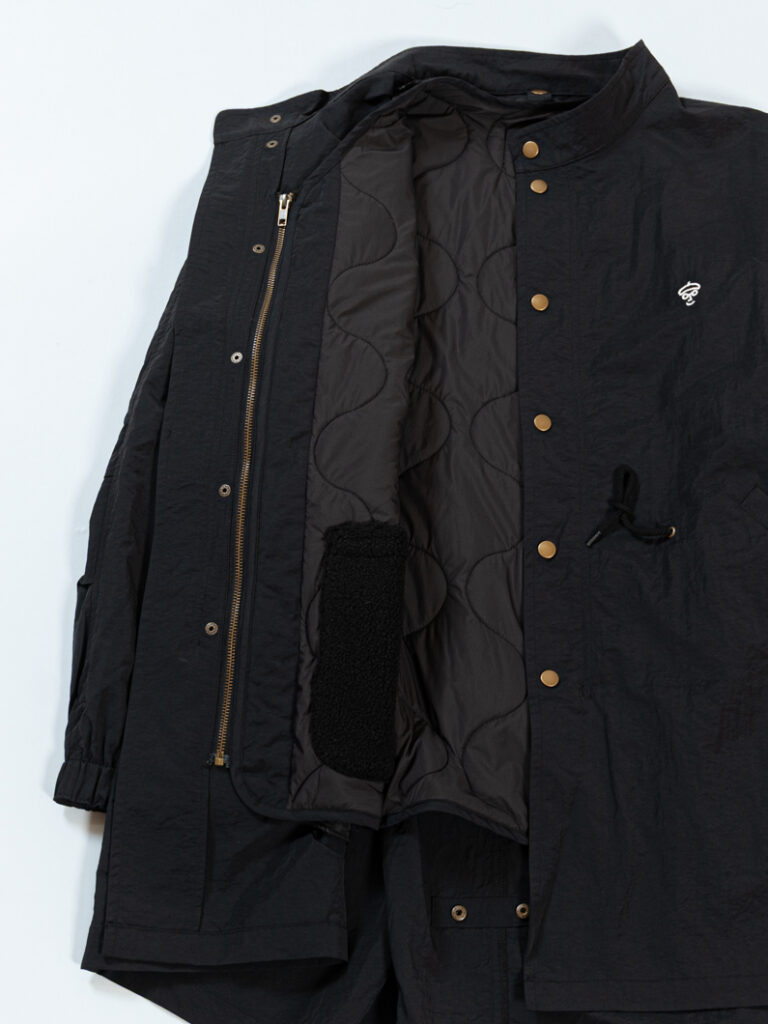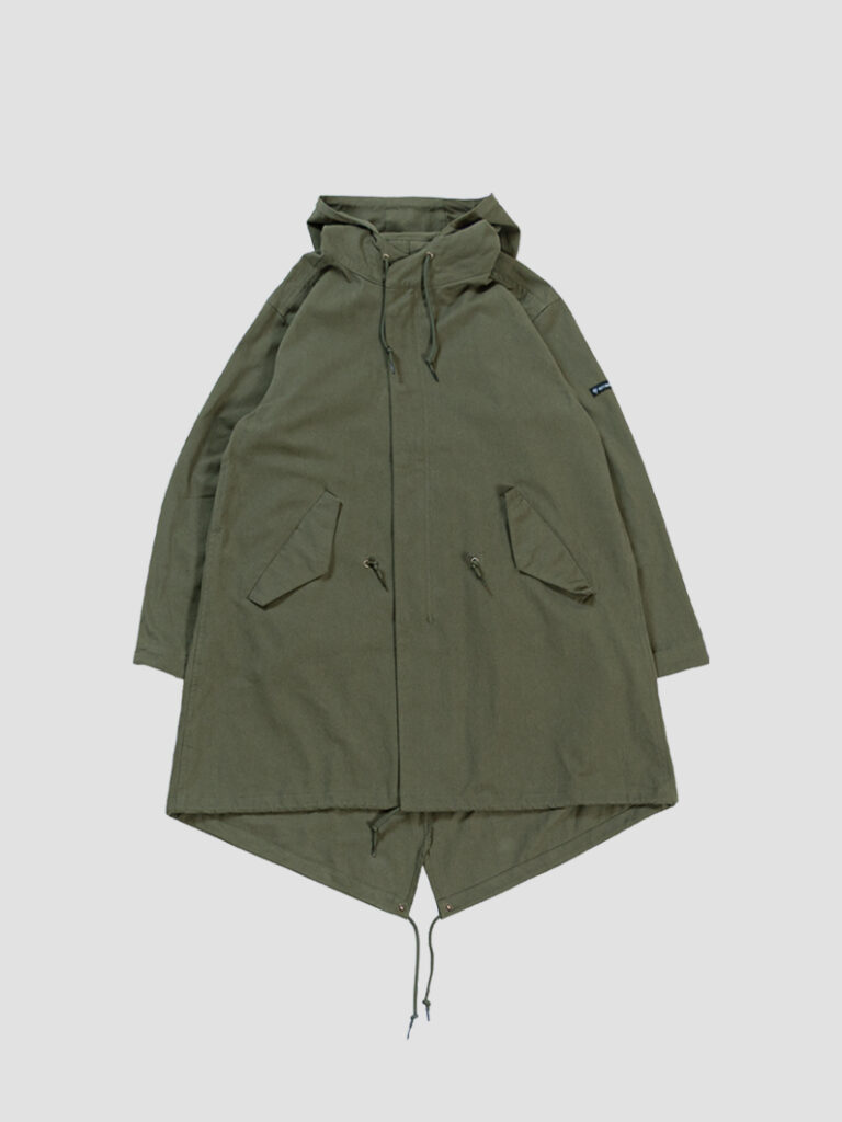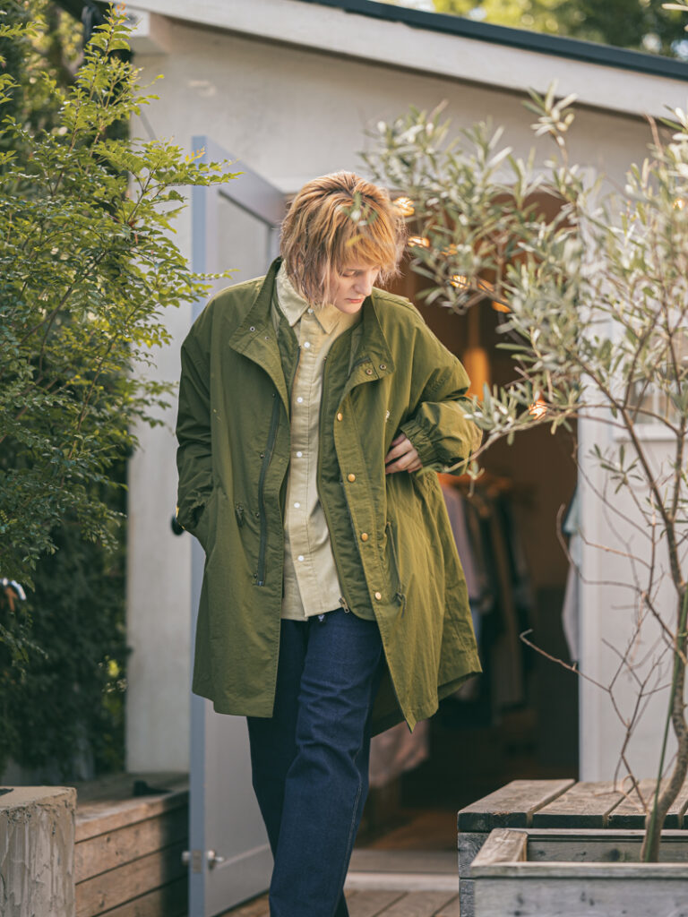 ミリタリーの名品「M-51」をベースに、フード一体型の本格仕様ながら、余計な装飾を削ぎ落としたクリーンなデザインに。