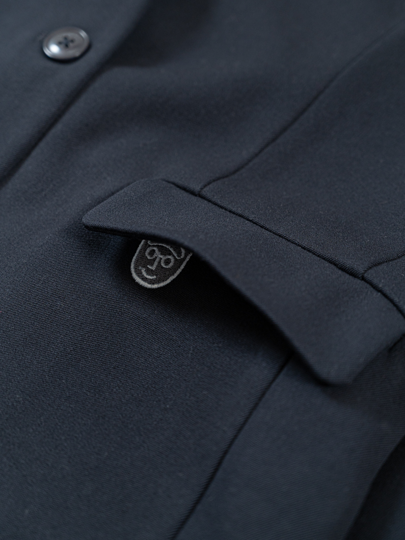 ポケットのフラップを出せば、刺繍をさりげなく隠してシンプルに。