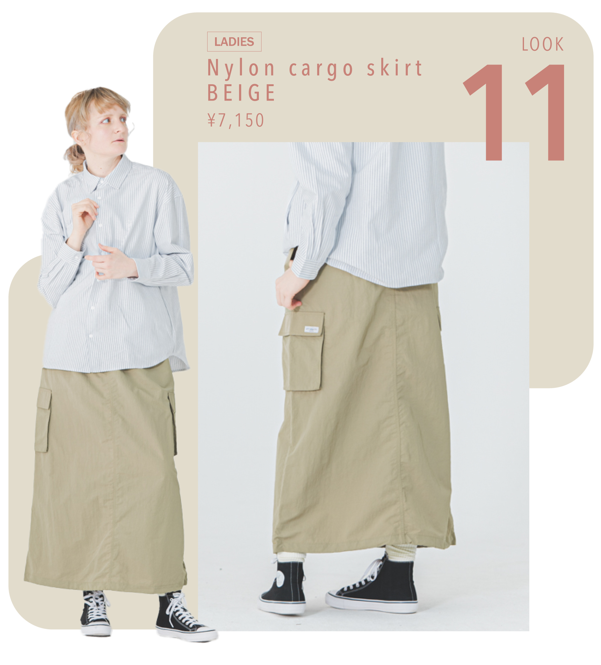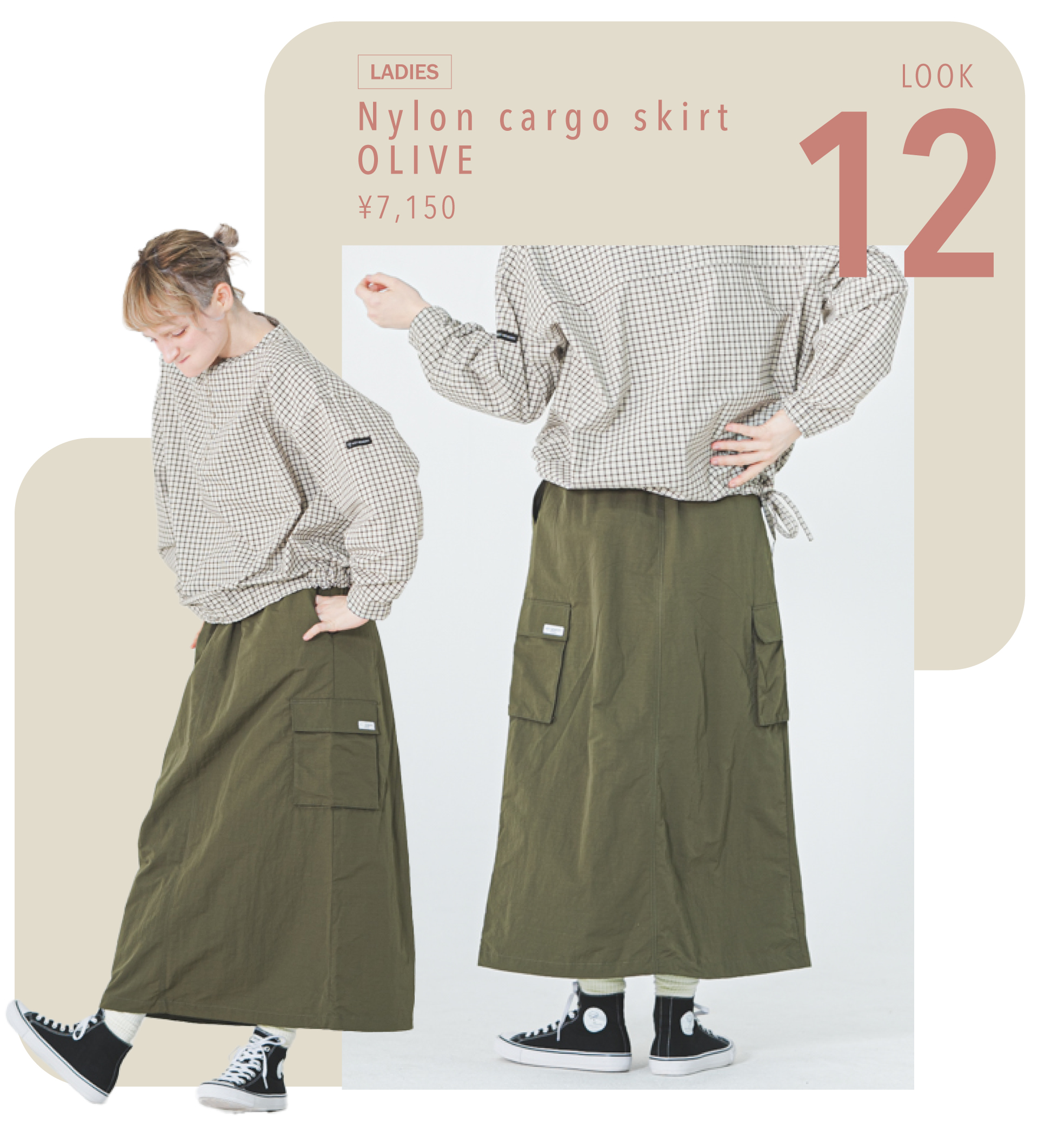軽やかなナイロンカーゴスカート。